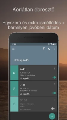 Minden reggel új esély egy friss kezdetre, és az AMdroid, a magyar fejlesztésű, innovatív ébresztőóra alkalmazás, éppen ebben segít. Felejtse el a nehézkes ébredéseket és a feledékenységből adódó elalvásokat. Az AMdroid nem csupán egy egyszerű ébresztőóra; ez a személyes reggeli rituáléjának digitális karmestere, amely okos és teljesen testreszabható funkcióival garantálja a zökkenőmentes napkezdést. Készüljön fel egy olyan alkalmazásra, amely az ébredés élményét forradalmasítja, megkönnyítve az átmenetet az álomból a tevékeny mindennapokba.