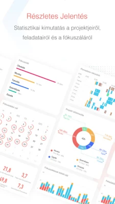 A Focus To-Do szívében egy testreszabható Pomodoro időzítő található, amely segíti a mély koncentrációt. Állítson be személyre szabott munka- és szünetidőket, élvezze a diszkrét értesítéseket, és válasszon rövid vagy hosszabb pihenők közül, a folytonos mód pedig zökkenőmentes munkafolyamatot biztosít. A feladatok kezelése sosem volt még ilyen egyszerű: rendezze projektjeit, hozzon létre ismétlődő teendőket heti rutinok kialakításához, bontsa fel a komplex feladatokat kisebb részfeladatokra, és emelje ki a prioritásokat színkódolt címkékkel. Ne feledkezzen meg többé semmiről az intelligens emlékeztetőkkel, és tervezze meg napját a becsült Pomodoro számok segítségével. Kövesse nyomon fejlődését a részletes statisztikákkal, melyek áttekinthető Gantt-diagramokon és trendjelentésekben mutatják be a fókuszban töltött időt és a befejezett feladatokat.