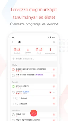Mai rohanó világunkban a fókusz megtartása és a feladatok rendszerezése sokszor kihívást jelent. A Focus To-Do egy innovatív eszköz, amely zseniálisan ötvözi a bevált Pomodoro Technikát egy robusztus feladatkezelő rendszerrel, segítve Önt abban, hogy maximális hatékonysággal végezze el tanulmányait, munkáját vagy akár a ház körüli teendőket. Érje el céljait megszakítás nélkül, fokozza koncentrációját, és búcsút mondjon a halogatásnak ezzel az intuitív alkalmazással, melynek célja, hogy minden napjából a legtöbbet hozza ki.