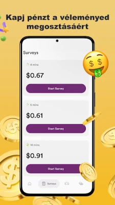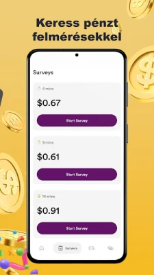 A Golden Surveys nem csupán egy alkalmazás; egy virágzó közösség része lehet, ahol minden egyes vélemény számít, és hozzájárul a jövő termékeihez és szolgáltatásaihoz. Platformunk rendszeres frissítésekkel, új felmérésekkel és izgalmas feladatokkal biztosítja a folyamatos bevételi forrásokat, így sosem fogy ki az alkalmakból. Átlátható rendszerünknek köszönhetően mindig pontosan láthatja, mennyit ért a hozzájárulása, és megbízhatóan juthat hozzá a megérdemelt jutalmakhoz. Minél aktívabban részt vesz, annál nagyobb pénzösszegekre tehet szert, miközben hasznos visszajelzést ad a márkáknak, és élvezi a flexibilis pénzkereset előnyeit.