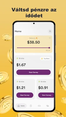 Alakítsa át gondolatait és meglátásait kézzelfogható jutalmakká a Golden Surveys platformmal! Csatlakozzon ahhoz a több ezer tájékozott felhasználóhoz, akik nap mint nap hasznosítják véleményüket a legkülönfélébb témákban. Legyen szó akár otthoni kényelemről, egy munkába járásról vagy egy utazás során kihasznált holtidőről, a Golden Surveys ideális lehetőséget kínál arra, hogy szabadidejét értékes tevékenységgé formálja, bárhol és bármikor.