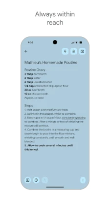 Az élet ritmusában a Google Keep mindig Önnel tart. Bármilyen eszközön is legyen – telefon, táblagép, számítógép vagy Wear OS okosóra – minden hozzáadott tartalom azonnal szinkronizálódik. Így garantált, hogy gondolatai és listái mindig naprakészek és elérhetők lesznek, bárhol is járjon. Ráadásul a Google Keep okos emlékeztetőkkel biztosítja, hogy a megfelelő időben, a megfelelő helyen kapja meg a szükséges információt – például egy bevásárlólistát pontosan akkor, amikor belép az üzletbe. A Google Keep webes felületen is elérhető a http://keep.google.com címen, és megtalálható a Chrome Webáruházban is.