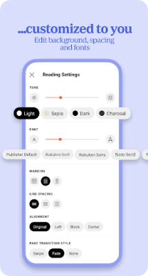 A Kobo Books App a kényelmet és az élvezetet szem előtt tartva készült, hogy minden olvasási és hallgatási pillanat zökkenőmentes legyen. Személyre szabhatja az olvasási élményt a szövegméret és -stílus beállításával, vagy aktiválhatja az éjszakai módot a szemet kímélő olvasás érdekében. A hangoskönyv-lejátszó intuitív kezelőfelülettel rendelkezik, mely megkönnyíti a navigációt, a szüneteltetést és az időzítő beállítását. Soha ne veszítse el a fonalat; olvasási előrehaladása automatikusan szinkronizálódik az alkalmazás, a Kobo Web Reader és a Kobo eReader között, így bármelyik eszközén folytathatja a történetet. Az alkalmazás számos nyelvet támogat, többek között angolt, franciát, spanyolt, olaszt, németet, hollandot, portugált és japánt, biztosítva, hogy anyanyelvén élvezhesse a műveket.