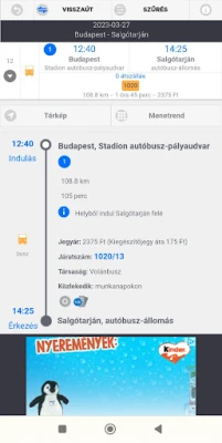 Az utazás megkezdése még sosem volt ilyen egyszerű. Az alkalmazás a telefon beépített GPS-ét felhasználva azonnal felismeri az Ön aktuális tartózkodási helyét, és 1500 méteres körzetben megkeresi a legközelebbi megállóhelyet. Így nem kell manuálisan keresgélnie indulási pontját. A találati listát ráadásul teljes mértékben személyre szabhatja: rendezze az eredményeket indulási vagy érkezési idő, menetidő, jegyár (Volán esetén), vagy az átszállások száma szerint. Finomhangolja az átszállási idők tartamát és a maximális gyaloglási távolságot is, hogy az Ön igényeinek leginkább megfelelő útvonalat találja meg.