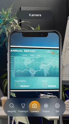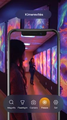 A "Nagyító" segítségével a részletek életre kelnek. Könnyedén növelheti a látványt 1x-től egészen 10x-ig, legyen szó egy apró feliratról, egy érme részleteiről vagy egy finom öltésről. Sötétben sem marad cserben: az integrált zseblámpa funkció gondoskodik a tökéletes megvilágításról, így a legrejtettebb zugokban is tisztán láthat. Ráadásul, ha egy pillanatot alaposabban meg szeretne vizsgálni, a képkimerevítő funkcióval rögzítheti a nagyított képet, hogy minden apró részletet nyugodtan áttekinthessen.